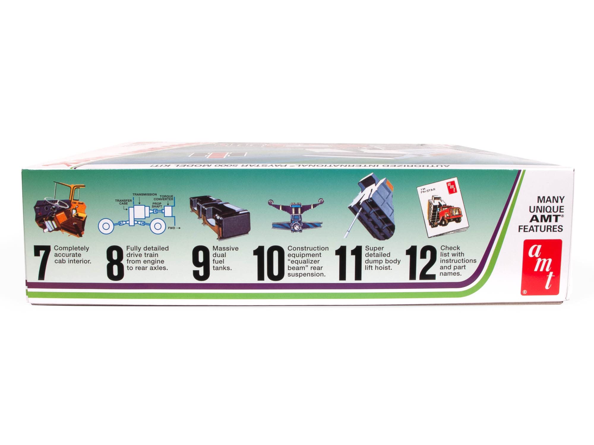 BIG ON DETAIL: At 12.00 inches long, the Paystar 5000 Dump Truck emphasizes size with authentic features, including: steerable front end, fully functional dump body, double action dump gate, removable hood, detailed IH-V-800 turbocharged engine, authentic cab interior, massive fuel tanks, Goodyear hi-flotation front tires and more! Fully paintable, with authentic water-slide decals, vintage-style packaging and detailed instruction booklet.
